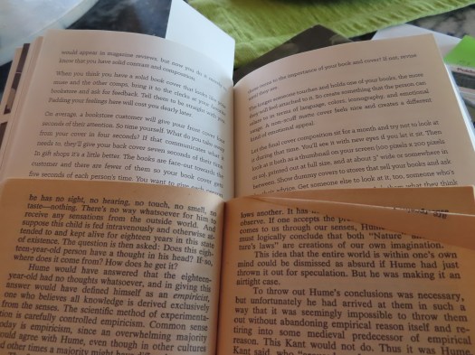 One of the obvious things that gets in the way of creating real paper books is the cost of production. I’ve had the experience of working with an Espresso print-on-demand publisher; after the original set-up costs, the unit cost per book was about eight dollars. Those books cost way more than they needed to. And part of the cost is due to our contemporary expectations about how words sit on pages.