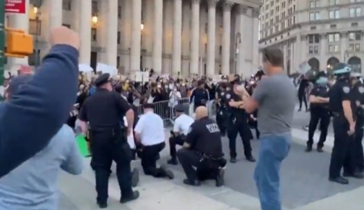 Let’s take a look at a news story from last week. During the protests in New York City, there was a humbling and hopeful moment, during which at least a few police officers stood with the protesters, talked with them for a bit, and then knelt together in a show of solidarity and unity. For just a few seconds, they weren’t occupier and occupied; they were fellow New Yorkers hoping for peace in their city.